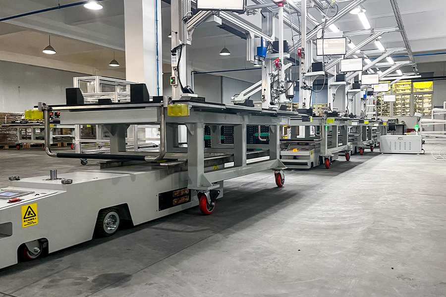 R1-12单向潜伏牵引式AGV适用于生产流程相对固定的车间,工作方式为AGV接收到系统指令后自动潜伏到料车底部,通过牵引棒自动挂接料车,实现端到端转运。也可由多台AGV组成流动生产线,实现工厂的柔性化生产。目前广泛应用于新能源锂电行业PACK线场景。