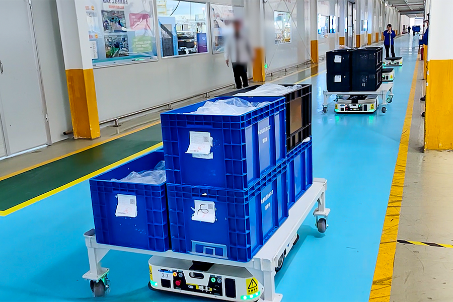 工作方式:AGV接收到系统指令后,AGV潜伏到料架底部,将料架举升起来,进行物料运送;也可由多台AGV组成流动生产生产线,实现柔性生产,目前已广泛应用于汽车及零部件行业、光伏行业、3C及半导体等行业。
